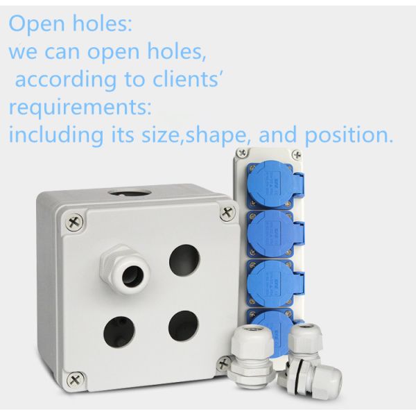 Outlet hole: Holes can be opened on the box as customers’ requirements, and installing cable gland can bring with better waterproof performance